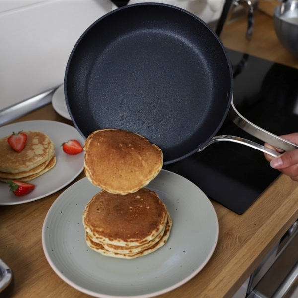 De antiaanbakpan HIROPAN zorgt voor gelijkmatige warmte, gezonder koken en moeiteloos schoonmaken – zonder te schrobben.