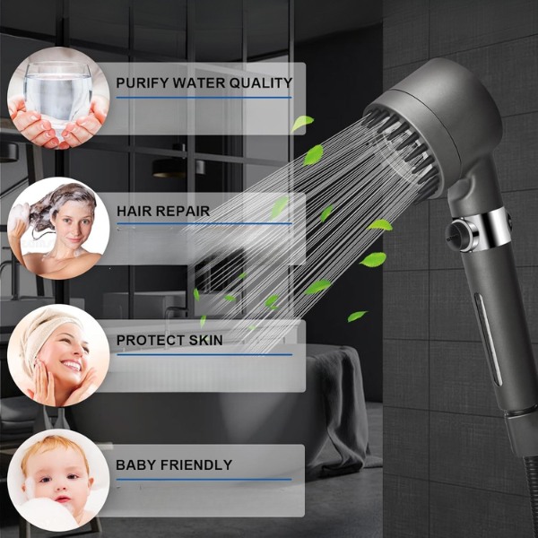De meegeleverde 2 hoogwaardige filters verminderen zware metalen, chloor en onzuiverheden, zodat elke douche je huid zacht en je haar gezond achterlaat.